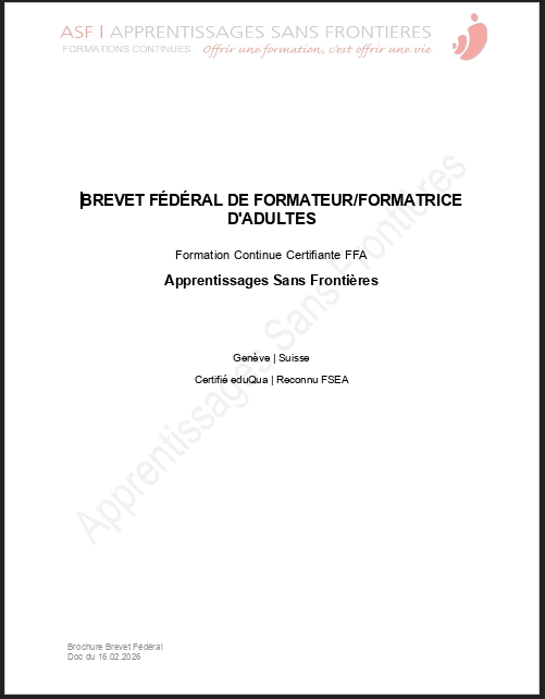 Le Brevet fédéral de formateur d’adultes est une certification reconnue au niveau national. Il permet notamment :
